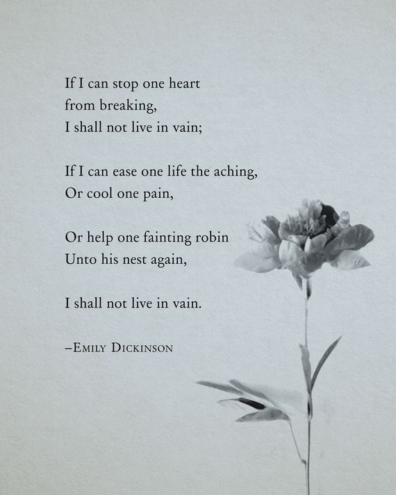 Emily Dickinson Quote If I Can Stop One Heart From Breaking I Etsy